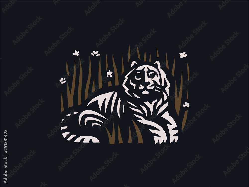 Fotografie Tiger lies in the grass.