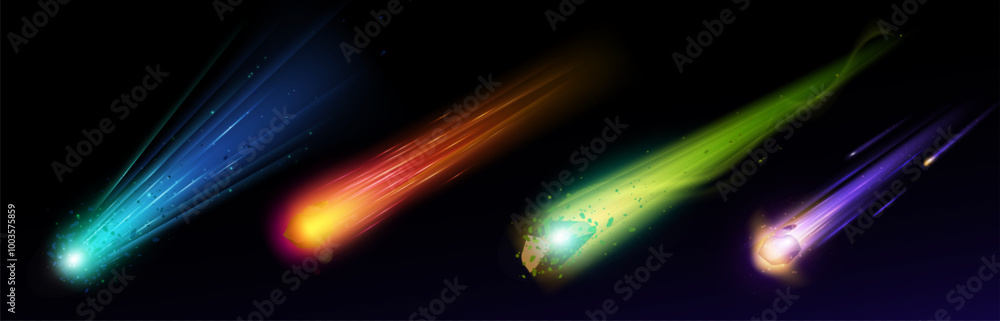 Fotografie Neon comets set isolated on black background