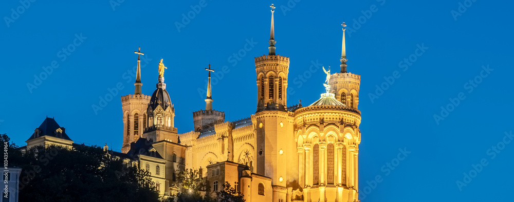 Fotografie famous view of Fourviere basilica in Lyon by night, France