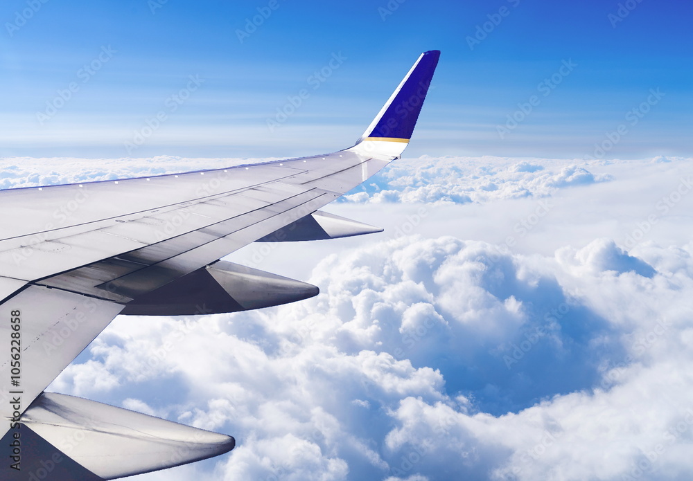 Fotografie view from airplane window cloud blue sky plane