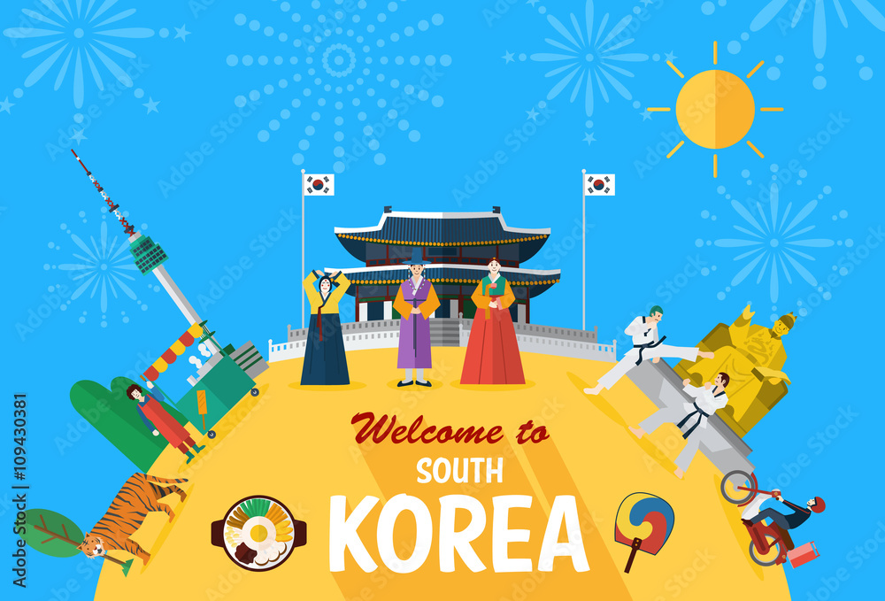 Fotografie Flat design, Illustration of Korean landmarks and icons