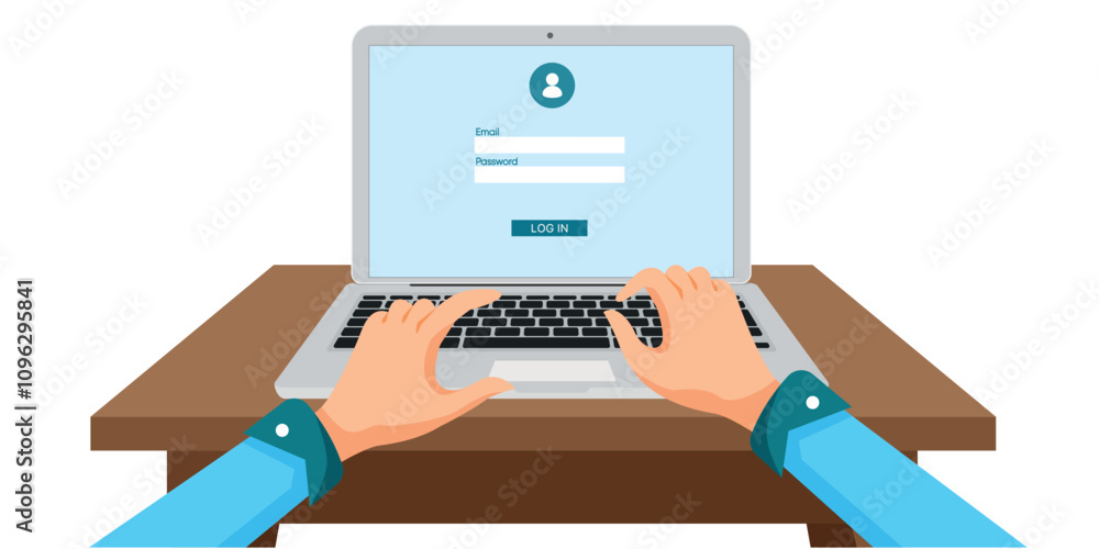 Fotografie Person typing login credentials on a laptop on a wooden desk.