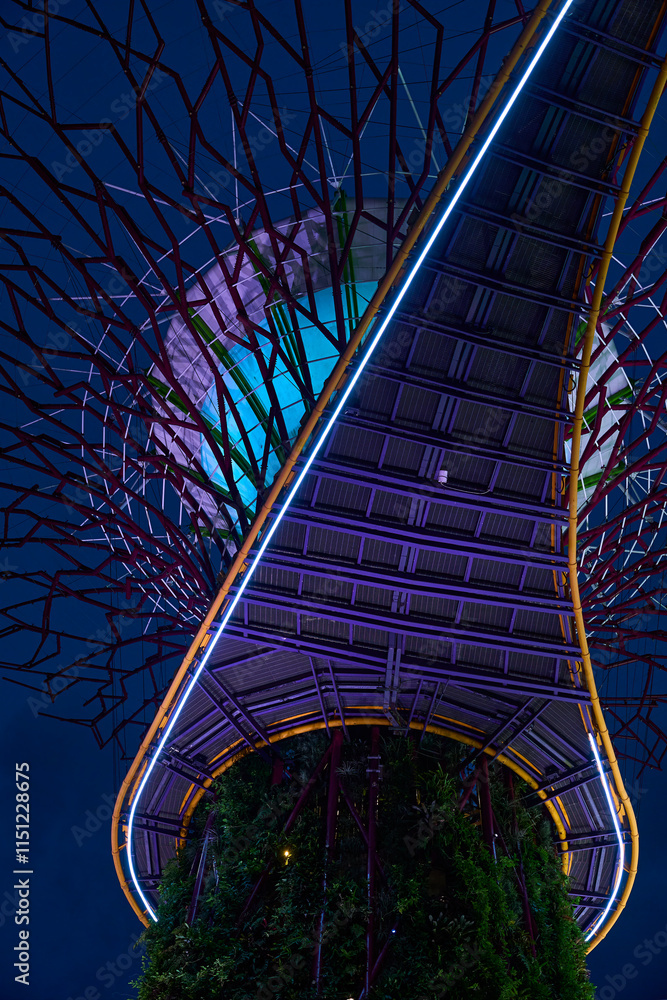 Fotografie Supertree grove canopy lighting up the night sky in singapore