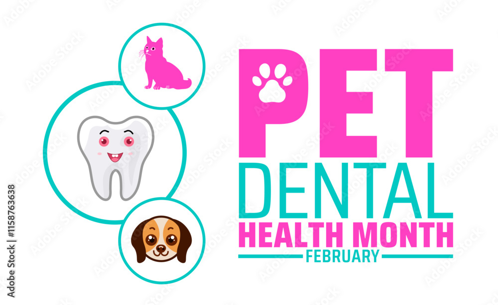 Fotografie National pet dental health month background banner or poster design template with pet, dog, cat and tooth picture
