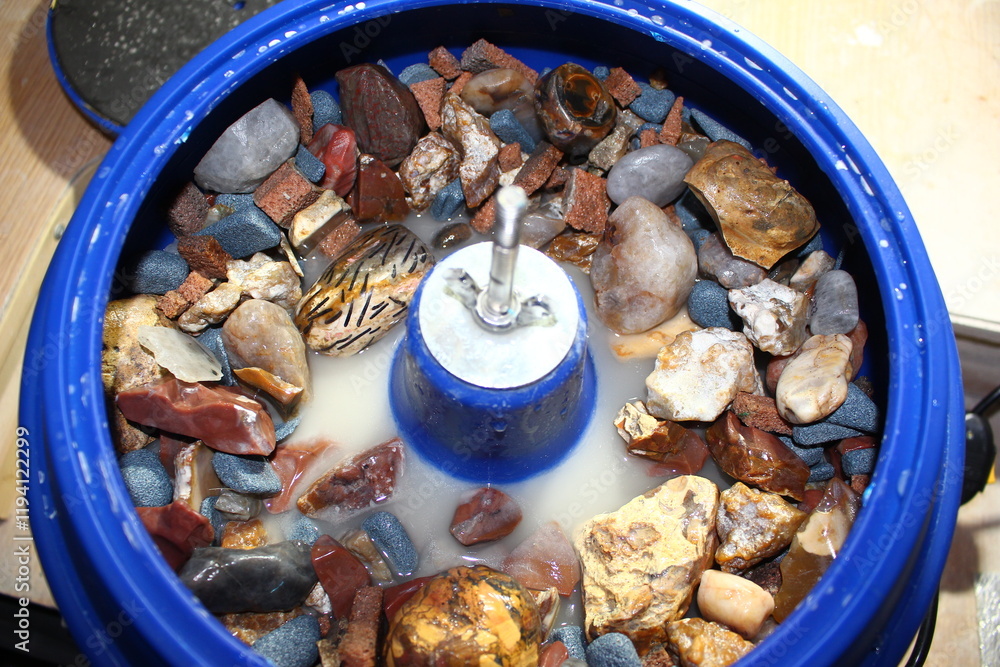 Fotografie Vibratory tumbling bowl filled with stones for processing