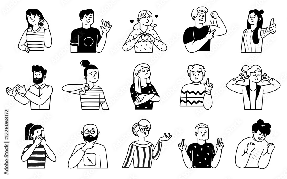 Fotografie Diverse people adult characters showcasing different emotion gesture and facial