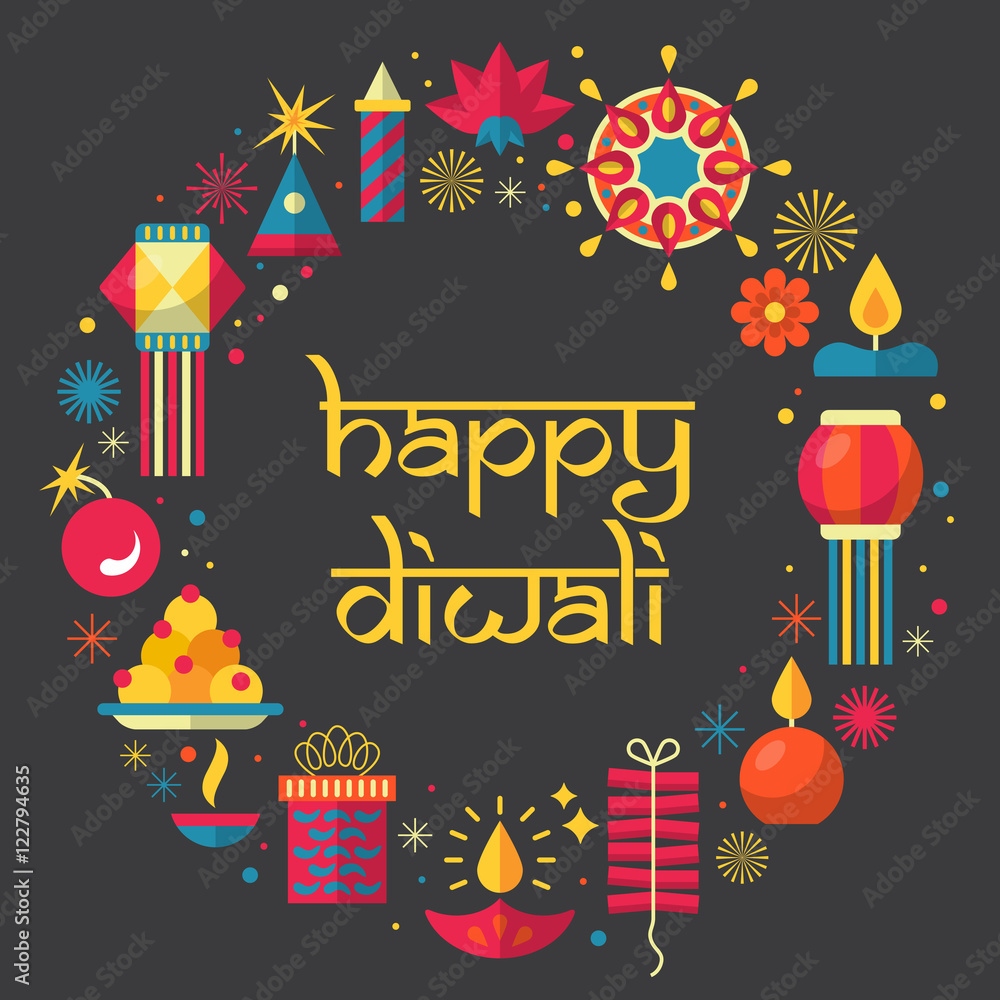 Fotografie Diwali Hindu festival greeting card design with flat modern elem