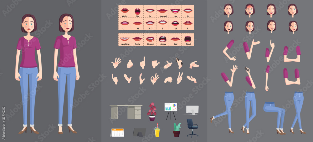 Fotografie Stylized Woman Character Creation Set, Cartoon woman with Movable Joints for eas