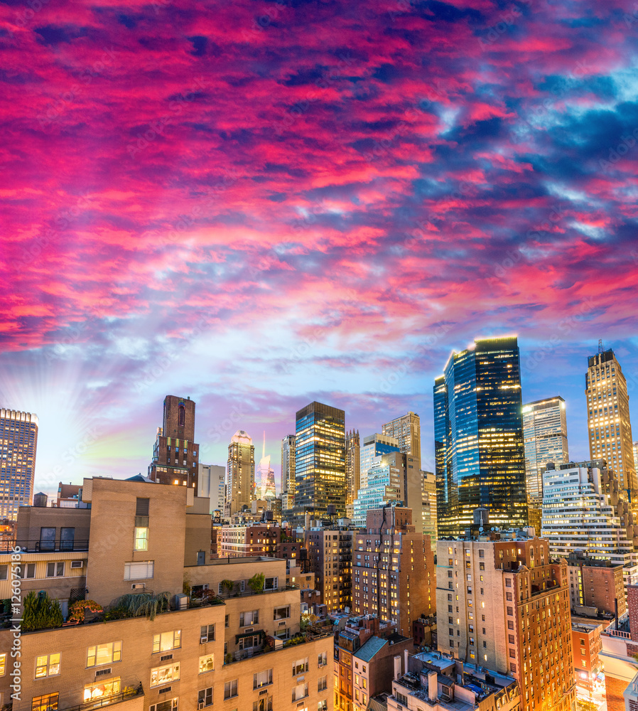 Fotografie Aerial view of Midtown Manhattan, New York CIty at dusk