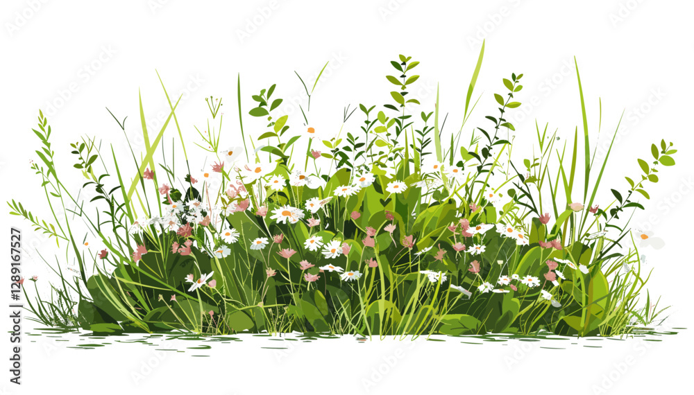 Fotografie Wildflowers and grass bush vector isolated on transparent background, botanical