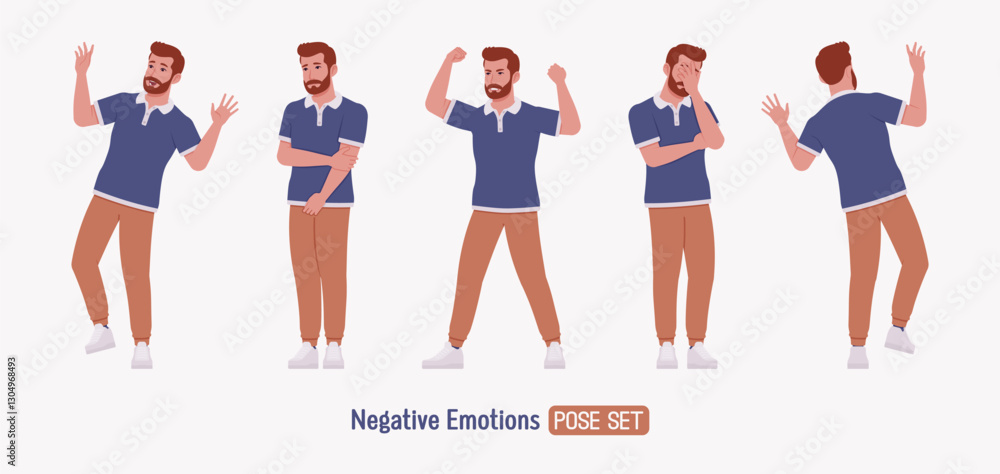 Fotografie Man, bearded handsome guy casual sporty wear negative emotion set
