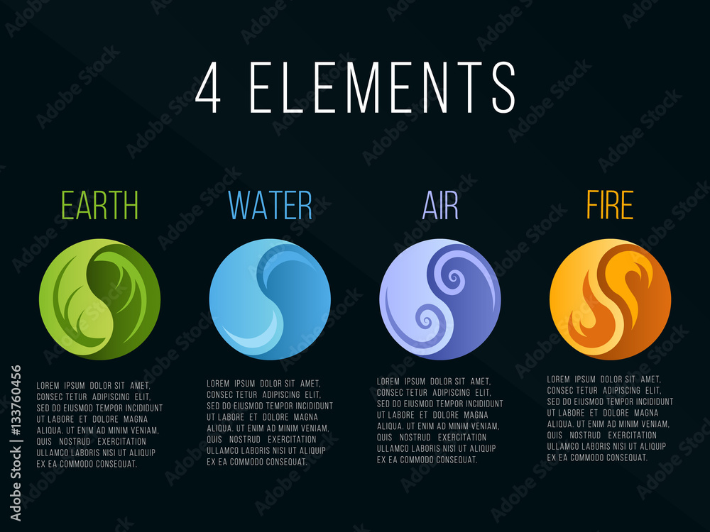 Fotografie Nature 4 elements in circle yin yang abstract icon sign