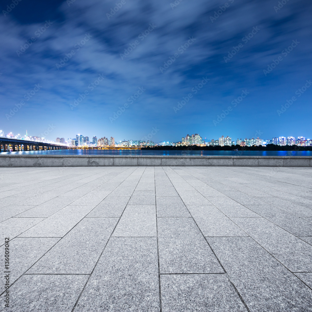 Fotografie cityscape and skyline of seoul at night from empty floor