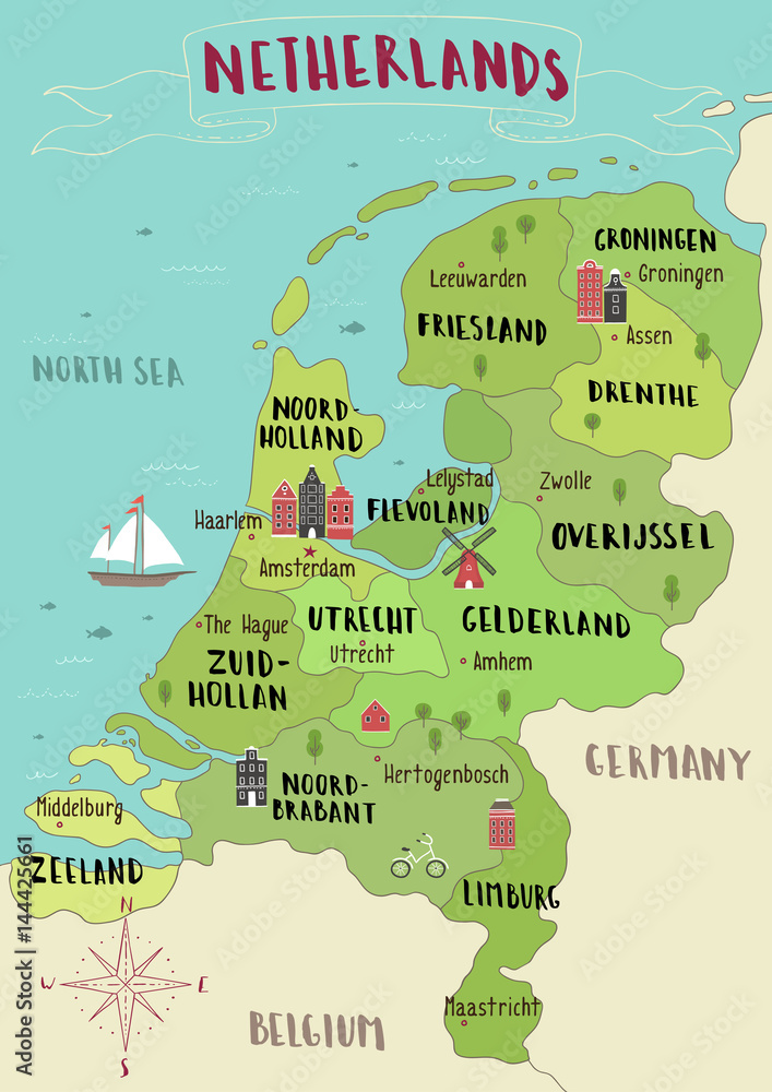 Fotografie Illustrated map of Netherlands