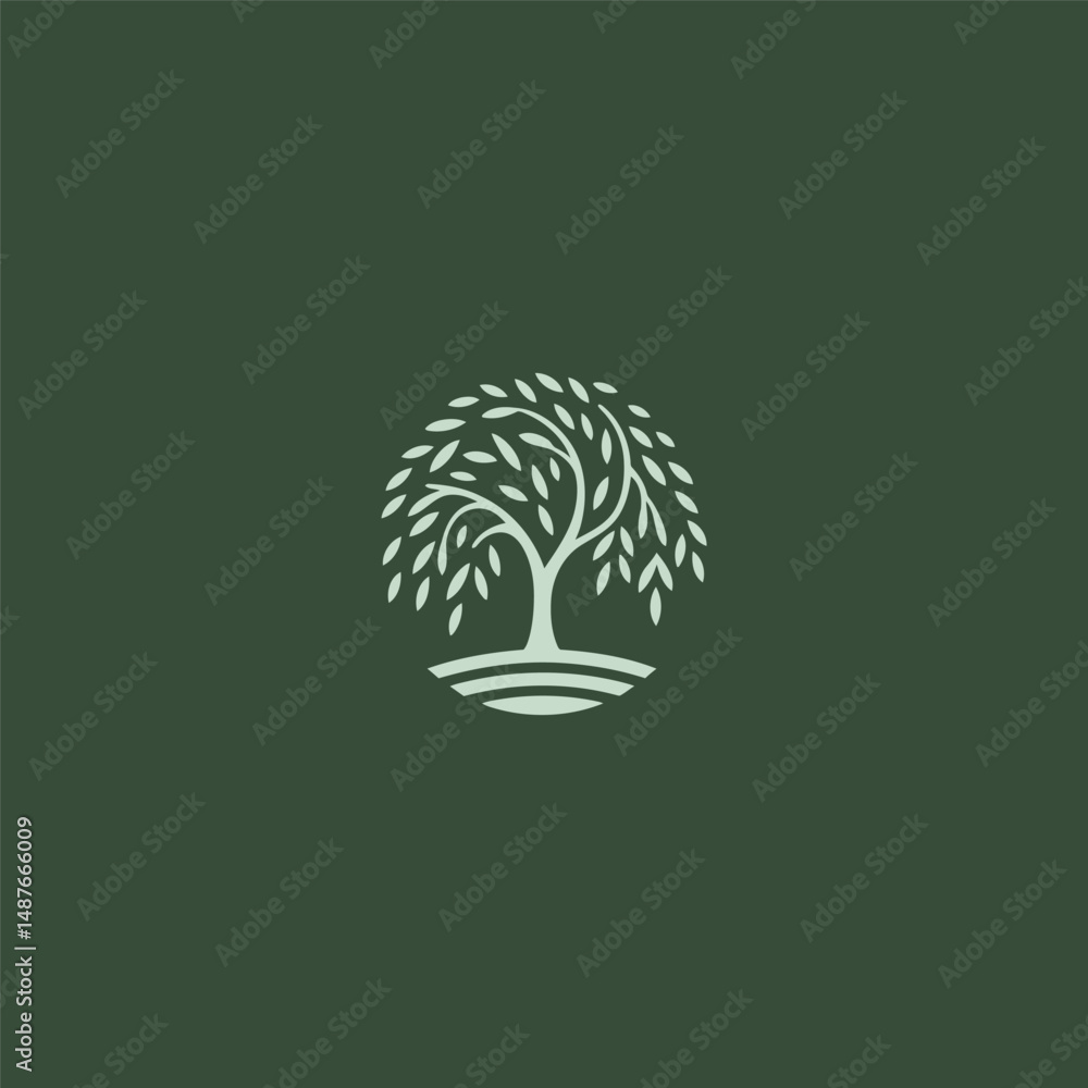 Fotografie Willow tree logo in graceful and minimalist illustration style.