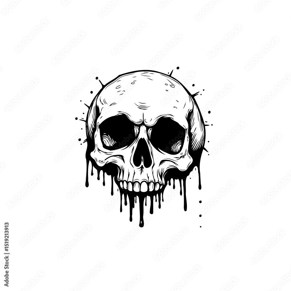 Fotografie Haunting monochrome skull illustration drips with dark ink, creating a morbid gr