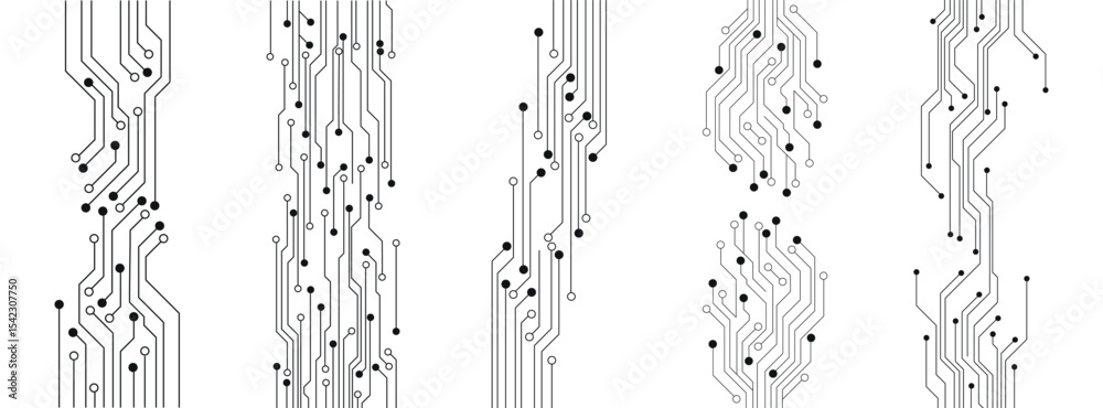 Fotografie Set of printed circuit board PCB tracks silhouettes isolated on white background