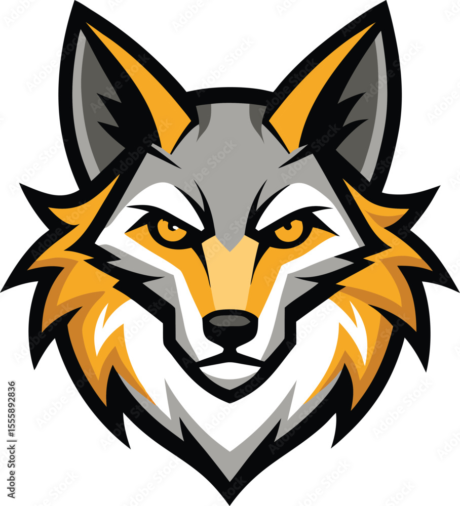 Fotografie wild coyote head mascot logo on a white rectangle (1)