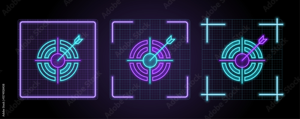 Fotografie Target arrow icon illustration, cyber neon visual, glowing border grid vector