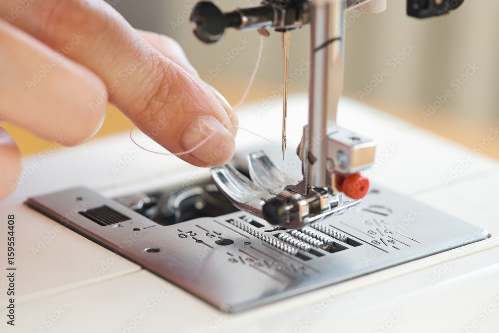 Fotografie Macro close up of tailor threading sewing machine