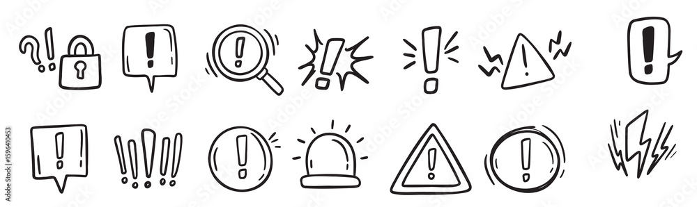 Fotografie warnings related hand drawn doodle simple icons set vector line drawing warnings