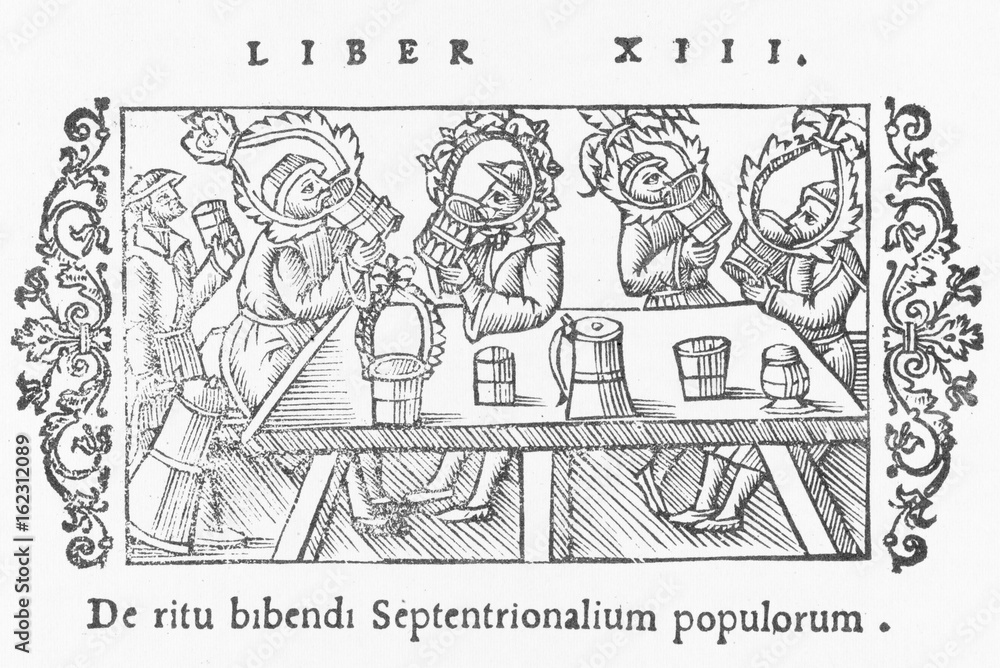 Fotografie Medieval drinking scene in Scandinavia. Date: 1560