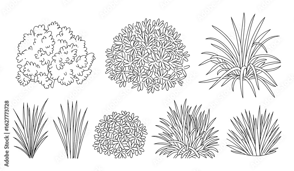 Fotografie Collection of stylized plants and foliage bush grass