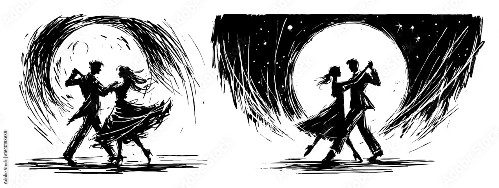 Fotografie moonlight dancing couple silhouette vector set
