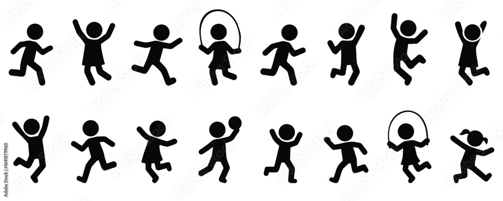 Fotografie Stickman kids playing and having fun in various playful activities, joyful child