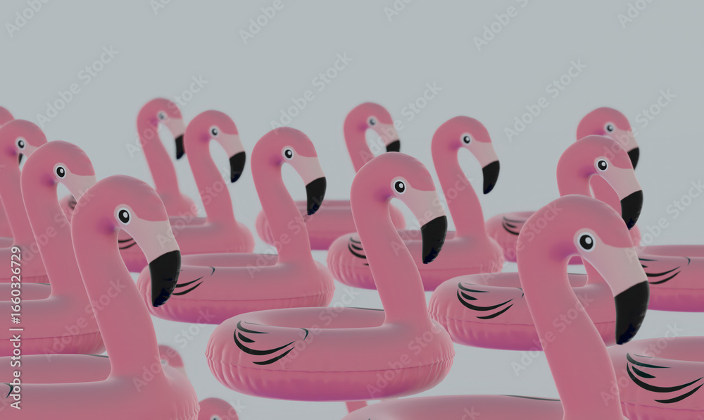 Fotografie A group of vibrant pink flamingo pool floats, offering a playful and cheerful su