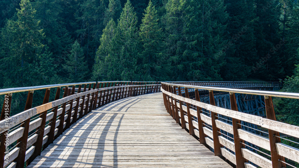 Fotografie Kinsol Trestle in Victoria, BC, Canada is a towering historic wooden railway bridge offering dramatic views and a Cowichan Valley Trail