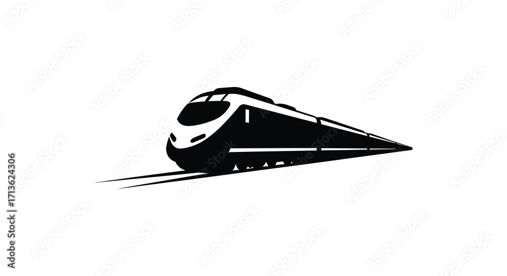 Fotografie Sleek black high speed train illustration moving quickly on white background