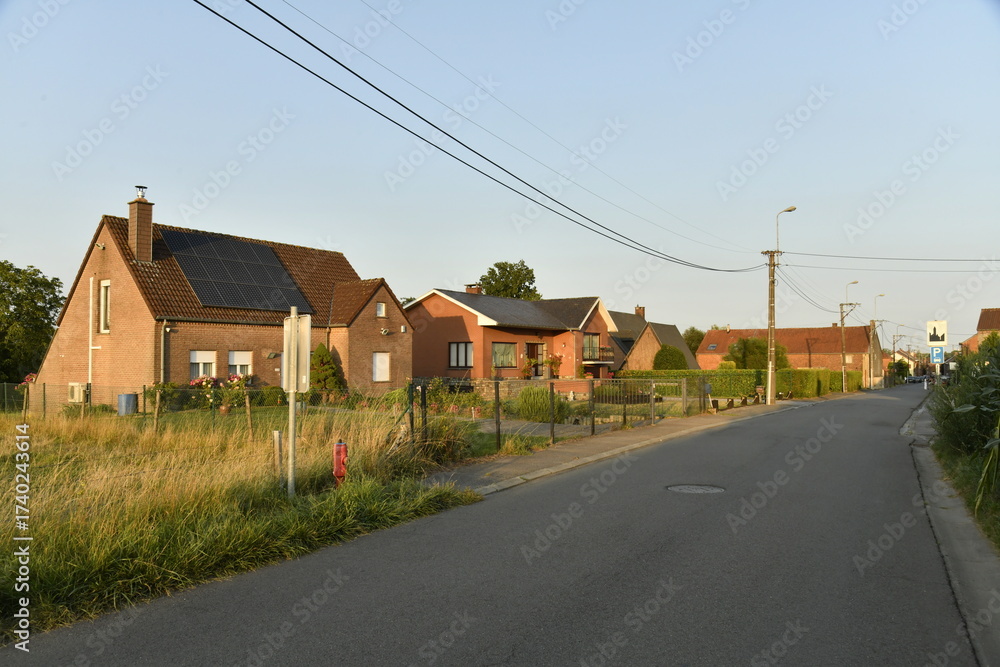 Fotografie Lumière du coucher de soleil sur les maisons modernes à Écaussinnes d'Enghien (S