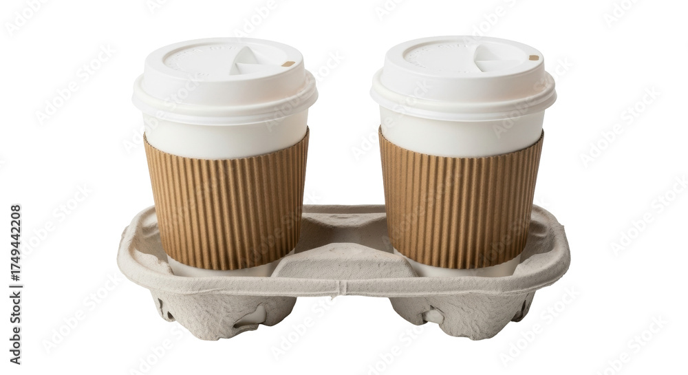 Fotografie Isolated pair of paper coffee cups in a fiber carry tray for transporting bevera