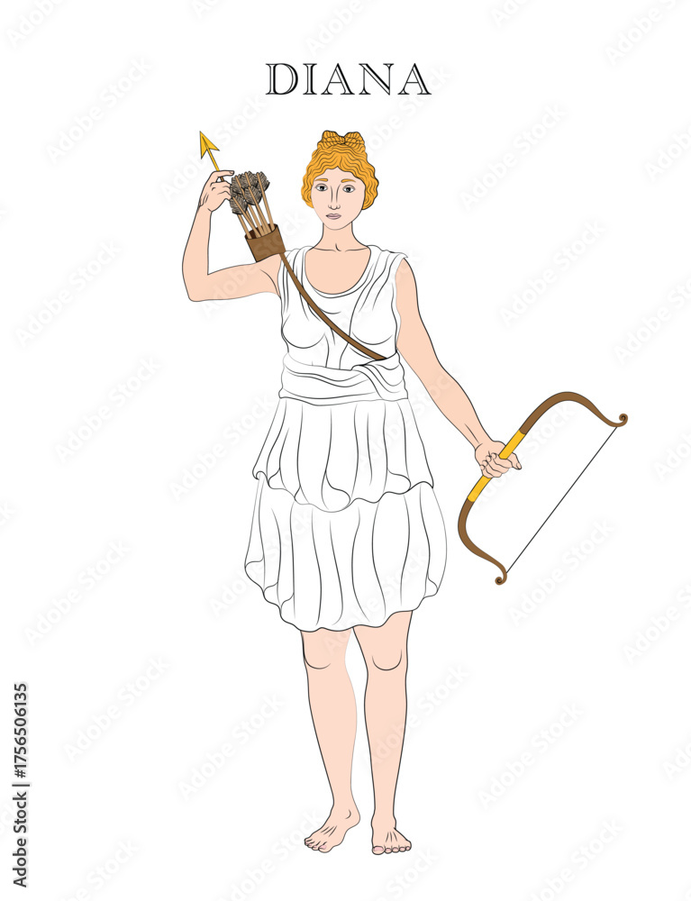 Fotografie Vector illustration of Diana, the goddess of the hunt, wild animals, fertility, and the Moon