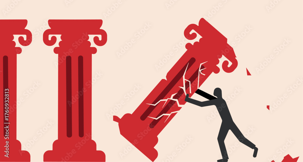 Fotografie Person stopping fall of pillar breaking, preventing disorder of law illustration