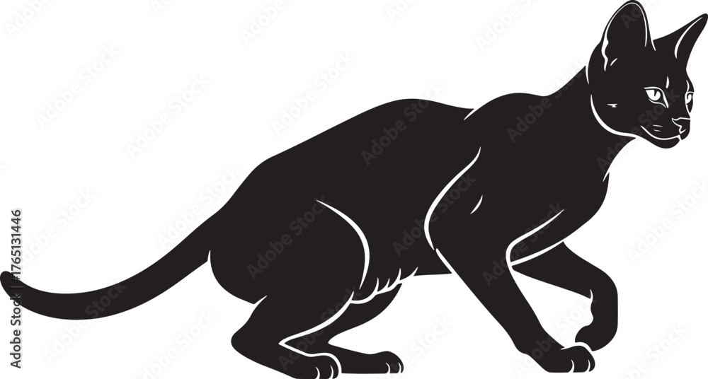 Fotografie Black cat silhouette design elegant feline animal domestic pet graphic artwork m
