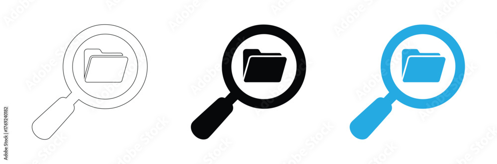 Fotografie Find your files quickly with search magnifying glass icon,Document with Magnifying Glass Outline and Silhouette Icon Set