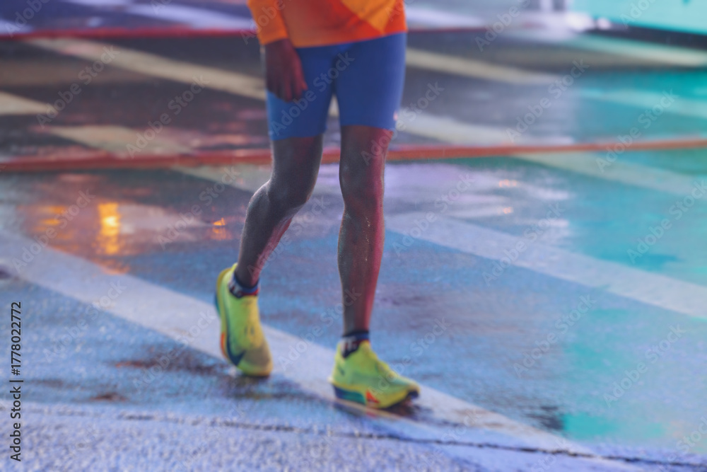 Fotografie Night marathon runners crowd in the rain, sportsmen participants start running t