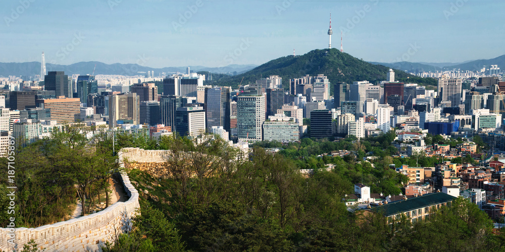 Fotografie Seoul Panorama and Historic Fortress Wall