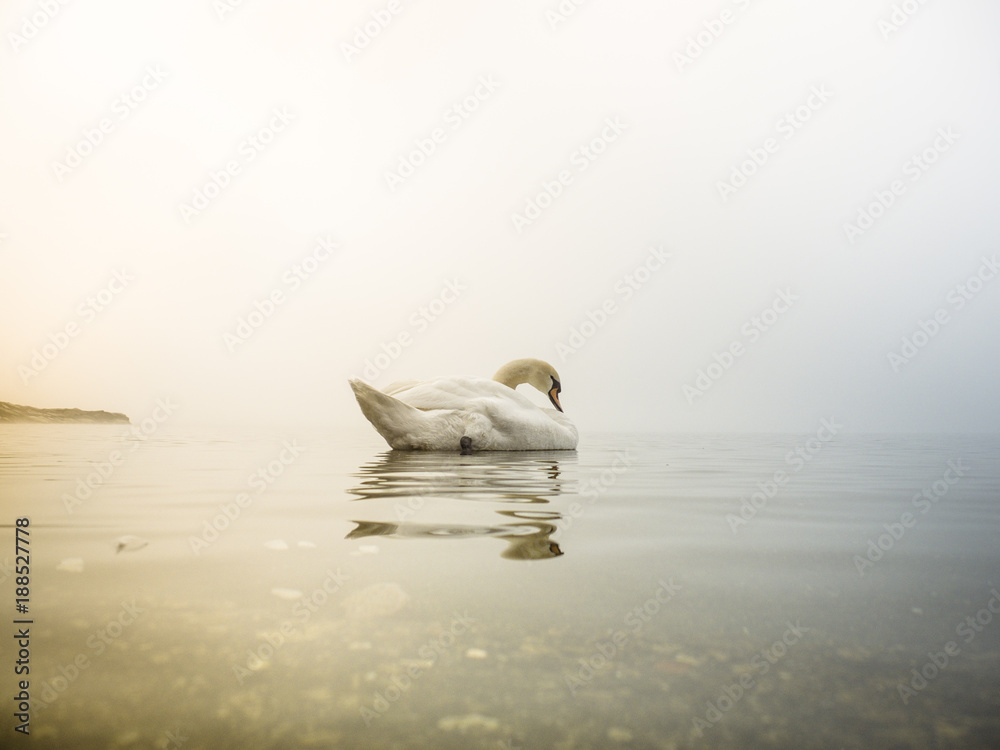 Fotografie swan in the lake, Lake Maggiore, Ispra, Varese, Lombardy, Italy