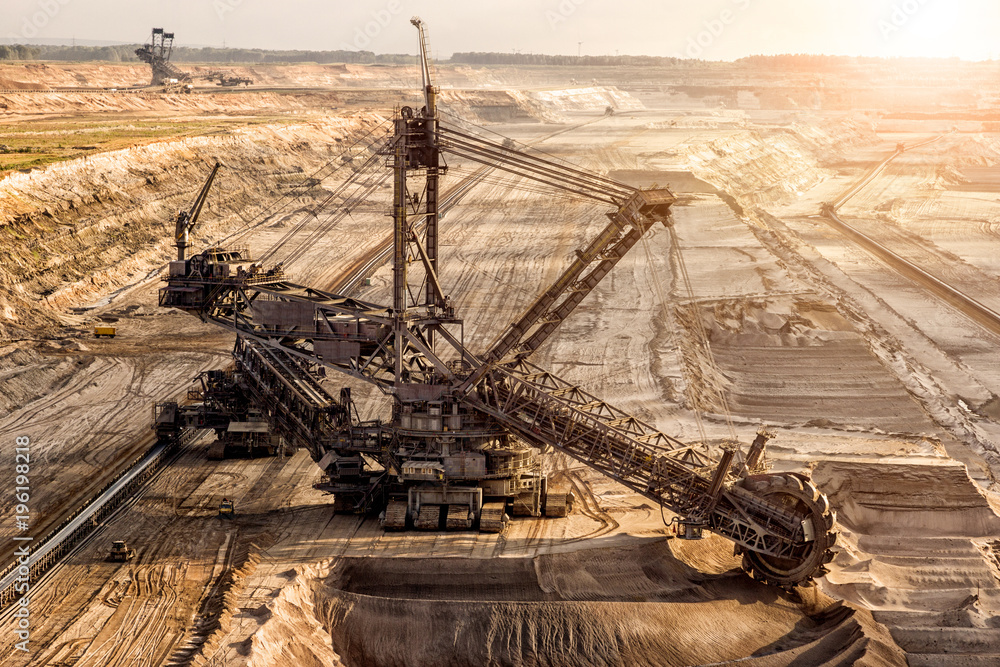 Fotografie Bucket-wheel excavator mining in a open pit brown coal mine.