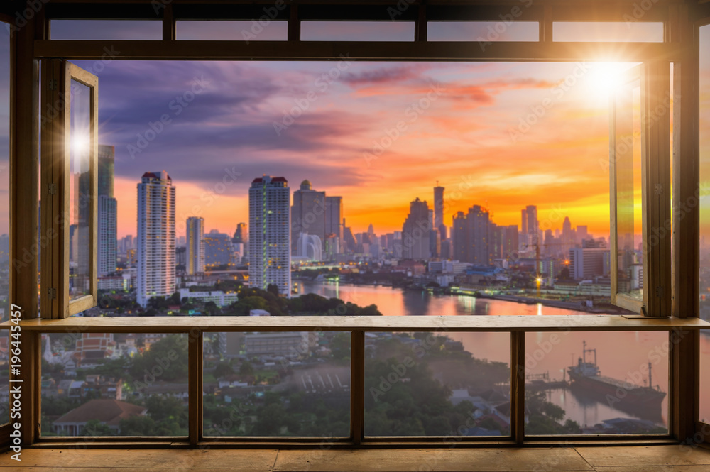 Fotografie Cafe with city view.