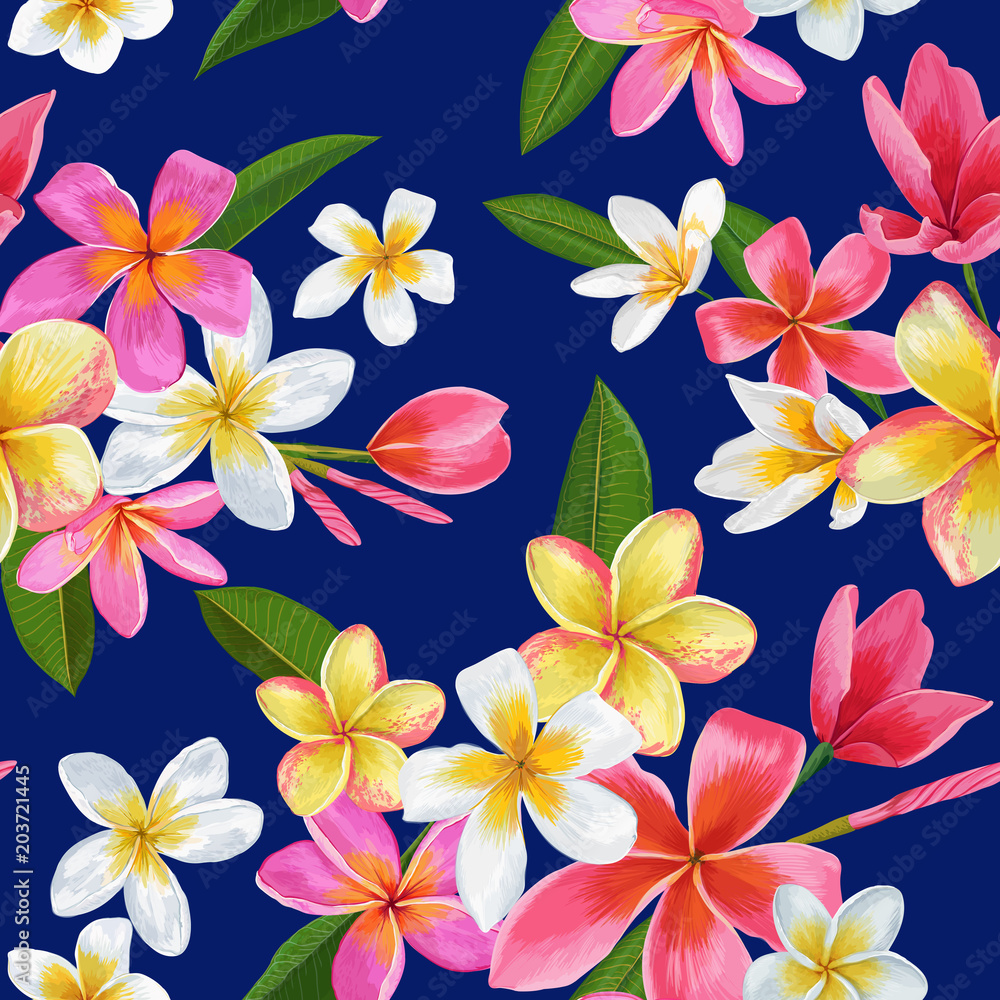 Fotografie Watercolor Tropical Flowers Seamless Pattern