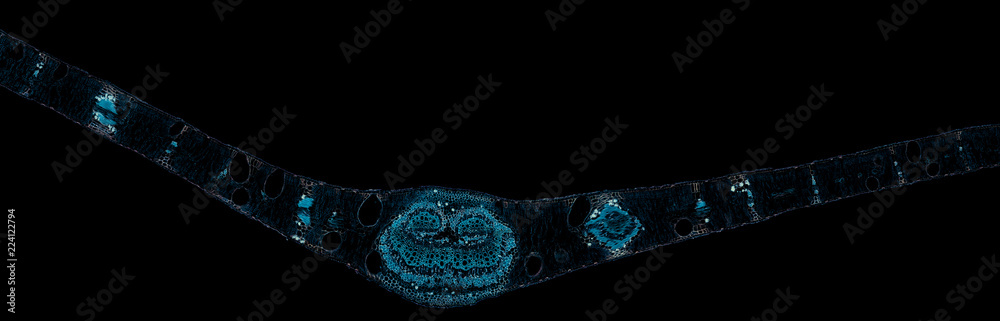 Fotografie eucalyptus leaf - cross section cut under the microscope – microscopic view of p