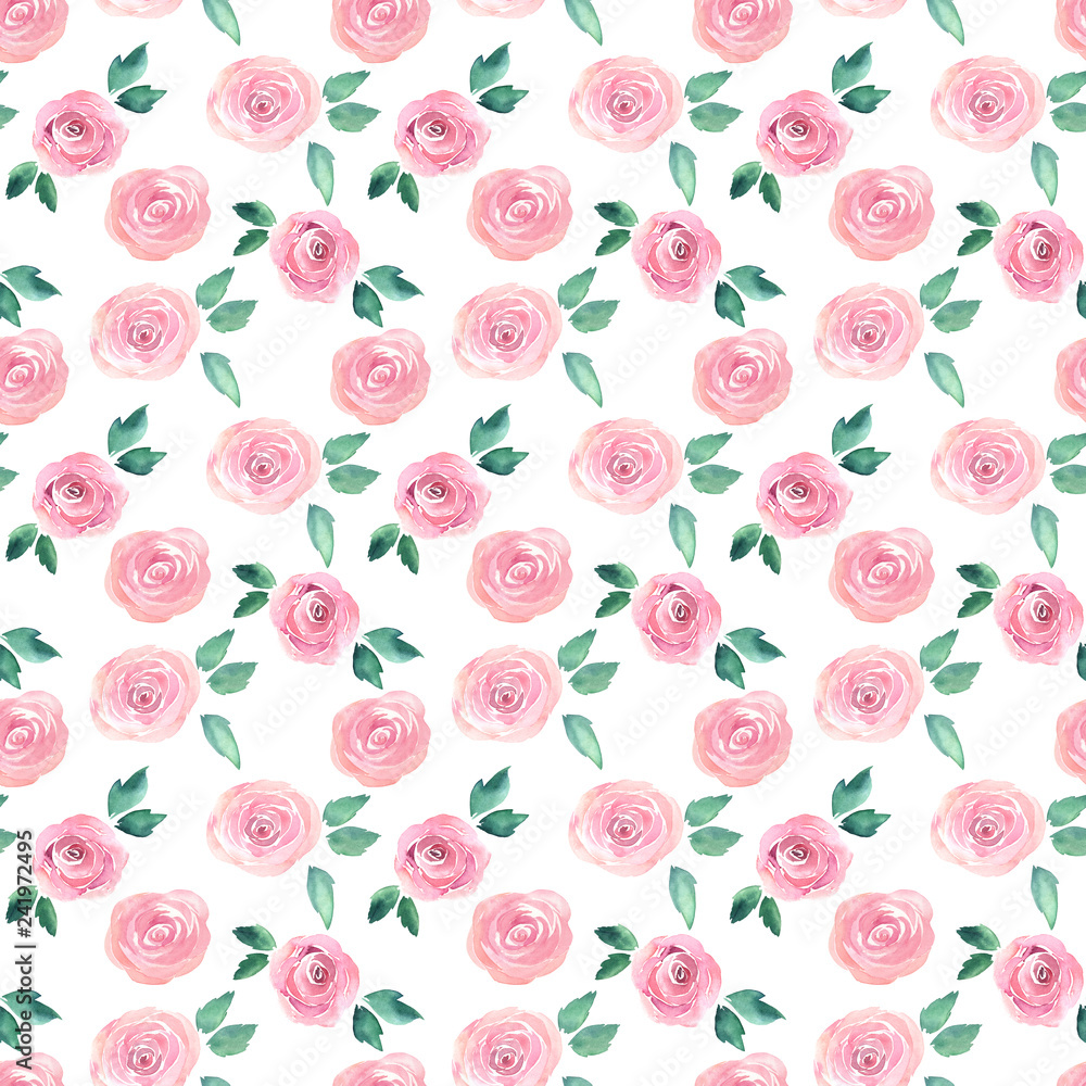 Fotografie Watercolor seamless pattern with roses. Hand drawn illustration