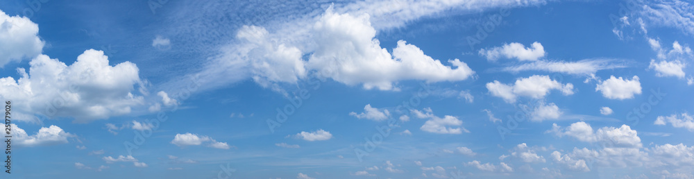 Fotografie Panorama or panoramic photo of blue sky and clouds or cloudscape.