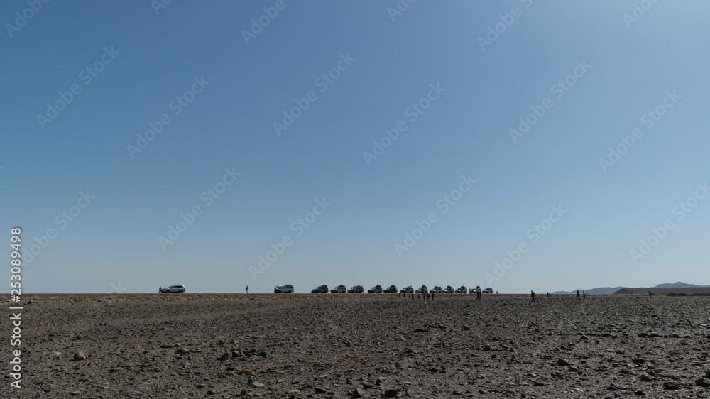 Fotografie Tourists are driven to the Danakil Depression in Ethiopia by convoys