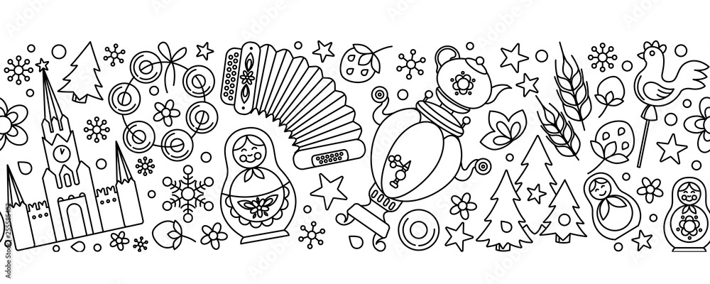Fotografie Russian Moscow thin line icons seamless background border frame pattern