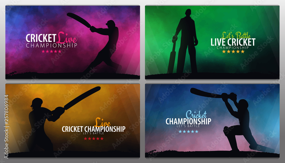 Fotografie Cricket Championship banner or poster, design with players and bats